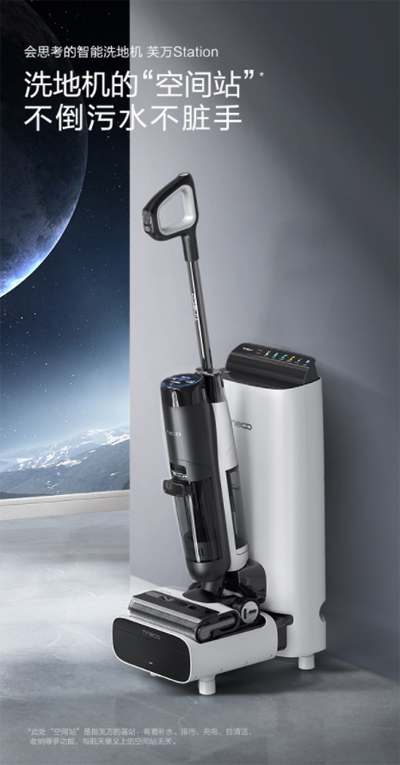 与之前所有洗地机的区别在于,芙万Station在洗地机之外增加了一个全新空间站,可实现自动补水、排污、清洗污水桶、整机自清洁、离心风干、滚刷除菌、无线充电、收纳八大功能,从此不用担心倒污水弄脏手,真正实现了拿起来就能用,放下就不用管。它就像是太空中的空间站,是宇航员的“家”,同时也为宇航员提供必要的补给和协助,这也正是洗地机“空间站”的由来。
