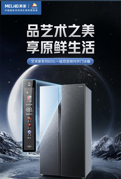 美菱艺术家系列605L一级双变频对开门冰箱采用一体式橱居美学,底部散热+90度开门,无需腾出空间散热,能够轻松嵌入橱柜、厨房,让整体家居浑然一体,无缝搭配更美观。同时,还能实现深冷速冻长效锁鲜、一级双变频节能更低噪、ADF+离子净味抗菌,时刻抗菌持久保鲜。