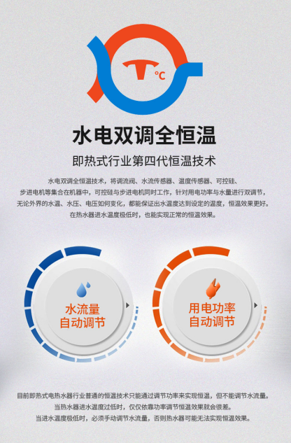 水电双调全恒温即热式行业更先进的恒温技术