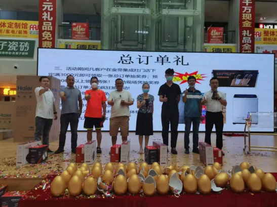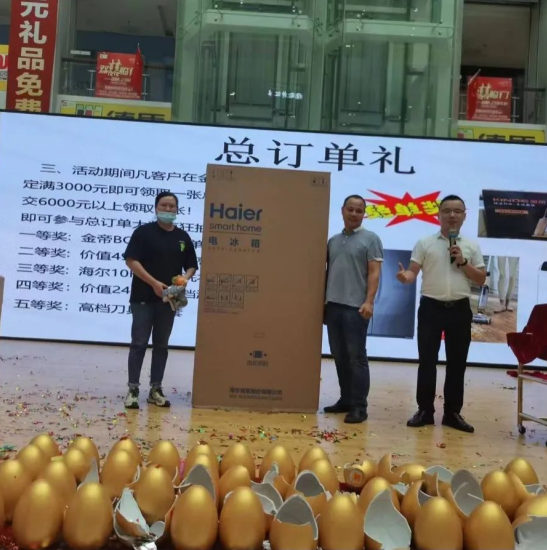 活动由表演开场预热,瞬间点燃了现场气氛。本次新品发布会以丰富的优惠政策和高性价比的产品矩阵回馈金帝新老客户,不仅向每位到场顾客发放了无购物抽奖券,活动期间下单的用户还能参与砸金蛋活动,并且免费抽取免单奖、海尔洗衣机、冰箱、高档洗脱一体机等重磅好礼!现场互动不断,惊喜连连!