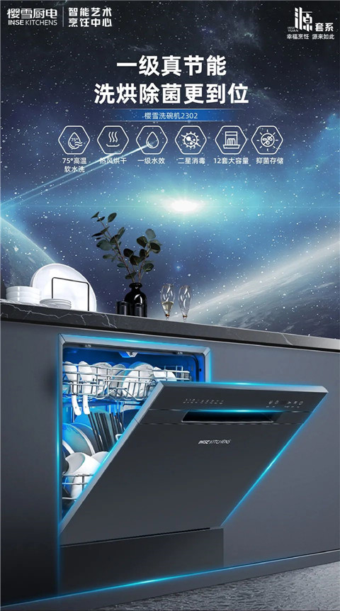 没关系,樱雪洗碗机2302可完美置换消毒柜,一步到位,灵活嵌入,轻松实现橱柜一体化。
