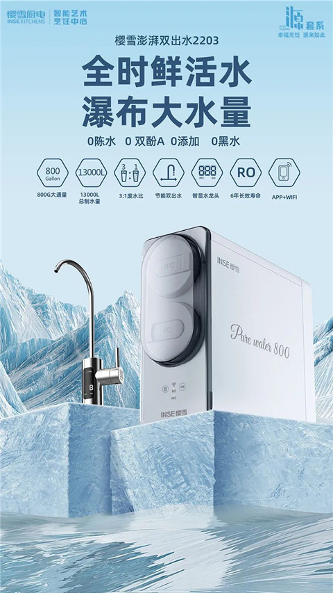 为降低换芯成本,让万千家庭都能享受到健康好水。樱雪澎湃双出水净水器2203搭载6年长效反渗透,过滤精度可达0.0001微米,全面净化水中的杂质,有效地拦截水中的细菌、重金属、水垢、有机物等物质,配合专利零陈水技术,随时打开水龙头都能喝到鲜活好水。