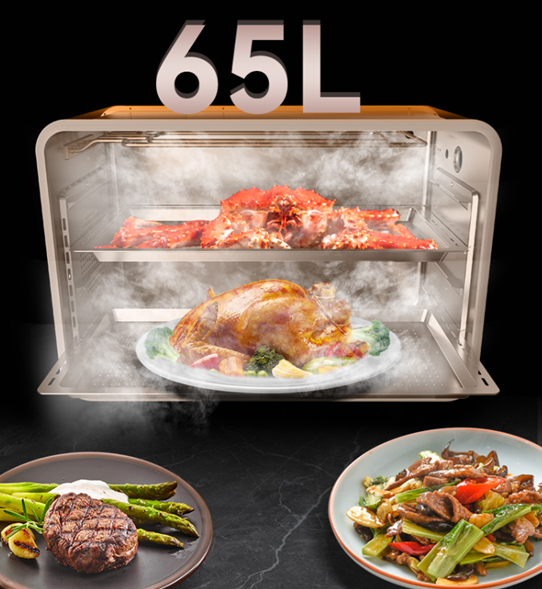 作为一款蒸烤一体机,金帝X901ZK蒸烤一体集成灶的65L大容量可以轻松满足一桌家宴的蒸烤需求,让朋友聚会、亲友宴请都能够得心应手。