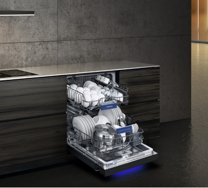 西门子极净魔盒洗碗机不仅在外观设计上追求极简主义,更通过智能化的设计让操作也极简化。操作界面同样沿袭了德系极简UI设计,化繁为简只留核心按键,独创的三按钮操控界面简洁明了,实现1+1+1>3的效果。同时,智控操作界面能让按键灯在需要时显现,无需时则“隐身”。此款洗碗机搭载7+5旗舰级洗涤程序,用户既可通过三键自由选择洗涤程序,也可通过晶御智能系统在手机端实现远程操控。值得一提的是,西门子极净魔盒洗碗机是市面上唯一支持蓝牙配对和WiFi双频连接的洗碗机,轻松实现智能家居互联。此外,洗碗机运行时,其配备的氛围灯还能通过智能蓝光感应显示洗涤状态,贴心地为消费者提示洗涤进程。