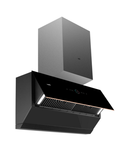 华帝J6059的极简设计和富有质感的黑色机身,既时尚美观也百搭各种风格的厨房。它独特的翻转拢烟腔结构,使得拢烟腔在关闭时,仅有216mm的超薄机身与橱柜齐平,超薄的形态设计带来了更充裕的厨房烹饪空间,空间效果也更趋向简约、统一。当烟机开启、面板打开时,拢烟腔翻出,面板下边缘距离墙面仅360mm,接近常规吊柜深度,与橱柜搭配能防止磕碰到头;同时灶台上的视野更加开阔,让人可以尽情施展厨艺。
