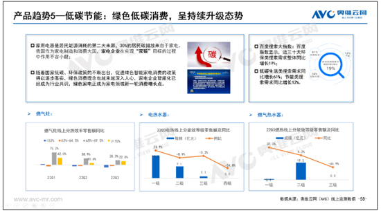 低碳节能。双碳政策提出已久,而今年,极端天气、欧洲气荒等热点话题又进一步带动了绿色家电的市场。燃气灶、电热水器、燃气热水器的能效结构也有明显的变化。