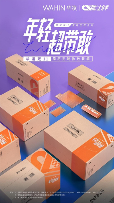 正值职场上分季,华凌数字主理人凌魂少女联合律政新人王骁、赵南希跨界开办“华凌支棱青年社”,为职场新人们撑腰。集结后,王骁赵南希带给大家的第一个惊喜就是推出了华凌11.11简历定制款包装箱,潮电们带上简历,申请任职于年轻人的家。