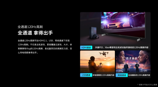 随着越来越多的游戏玩家将画面搬上大屏幕,游戏电视消费需求愈加旺盛。据京东家电数据显示,2021年度游戏电视销售额猛增27倍,成为高端电视最主要的新兴品类。基于游戏玩家对动态画面、流畅度、操控等方面的需求,创维A23S也致力于将游戏属性“拉满”。
