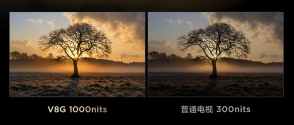 像是TCL V8G在百级背光分区的加持下,还拥有1000nits的峰值亮度表现,这就为其带来了高达1000万:1的超高对比度,使得我们在观看日落等高反差场景时,依然能够获得良好的细节呈现,不会有高光或是暗部细节糊成一片的情况。