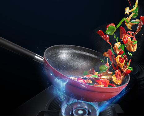 5.2kW爆炒火,四环上进风燃烧器,结合外扩式高压喷燃火瓣,能更好地包住锅底,实现高速均匀传热,爆炒起来更快更锁鲜。
