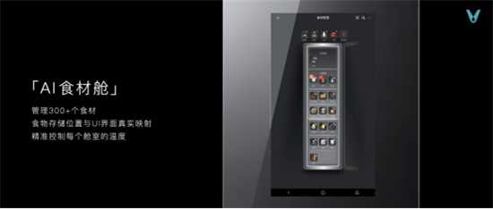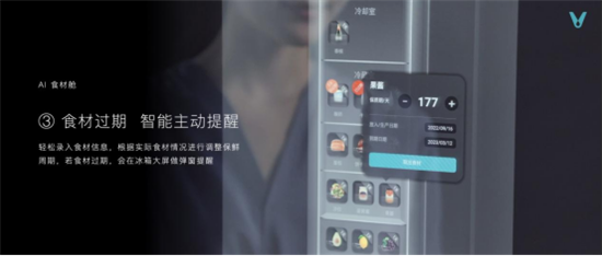 针对这一痛点,云米设计出AI食材舱。AI食材舱可以管理超过300个食材,且食物位置可以通过UI界面真实映射,还可以精确控制每个舱室的温度。用户每次开关门时,屏幕提醒录入食材信息。精确记录食材存放位置,更方便清晰地进行查找。若食材过期,会在冰箱大屏做弹窗提醒,只存新鲜不留隐患。