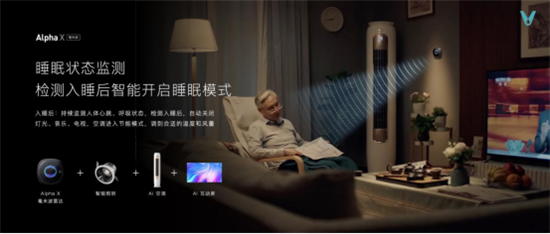 家里没人时,能不能通过智能感知,让全屋设备自动关闭或进入节能模式?针对这一问题,云米推出Alpha X AI超视感知雷达,通过精准感知人的存在状态、动作、运动轨迹、心跳或呼吸等,自动控制设备开与关。还可以进行睡眠状态检测,检测入睡后智能开启睡眠模式,自动关闭灯光、音乐、电视,空调进入节能模式,调到合适的温度和风度,再也不用担心电视、灯光没关,导致浪费电的情况。