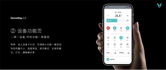 全新升级的云米HomeMap 2.0具备单设备管理,全屋场景管理,家庭成员互动三大功能。单设备管理功能为每个设备单独设置一张卡片,可以在一屏掌控设备所有功能,设备操控显示,所见即所得,操控更便捷。