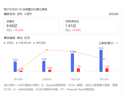 前三季度,亿田智能实现营业收入9.62亿元,同比增长19.02%;归属于上市公司股东的净利润1.61亿元,同比增长3.5%。