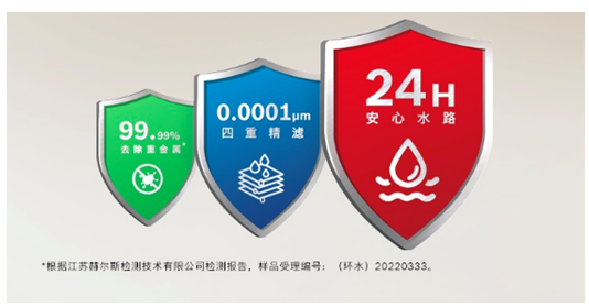 材质上,博世嵌入式净饮机全水路采用抗菌材质,能有效抑制细菌滋生,杜绝自来水在净化过程中被二次污染,“安心水路”的第1重盾护,为全家「净饮自由」提供了24小时长效护航,让每一滴水都洁净安心。为了快速将自来水净化为可以直接饮用的纯净水,新品搭载了原装杜邦反渗透滤芯,搭配多合一复合滤芯,最终凭借第2重盾护“四重精滤”,将水中重金属、细菌等有害物质去除,净化效果可达0.0001微米1。在“四重精滤”之一的活性炭棒支持下,还能进一步改善水的口感。第3重盾护“去除重金属”则凭借双滤芯相互配合,实现99.99%的重金属、挥发性有机物的去除率,让全家喝上放心健康的好水。