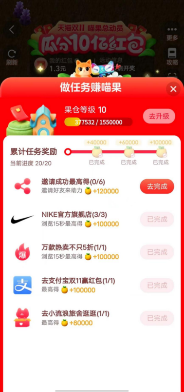 今年双11京东的活动基本没有太大的变化,依旧是浏览、加购、加会员、组队等组成的金币累计小游戏,横跨京东APP、微信小程序和京东金融三个平台。