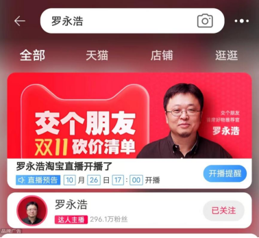 同样被认为从淘宝“跳槽”的还有俞敏洪——10月31日,俞敏洪在天猫“新东方迅程教育专营店”做1个小时现场直播,但主要是分享有关大学生学习成长规划的内容。