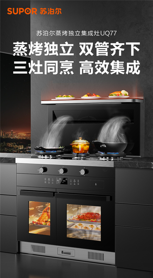 有了苏泊尔UQ77集成灶,即便是在快餐时代,也能好好吃饭,纵享美味佳肴不再是生活“负担”。