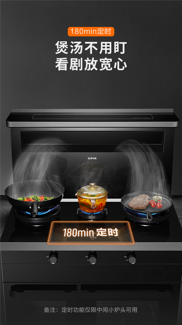相比于其他传统企业的产品创新,苏泊尔对集成灶的创新升级更在意的是能否提升用户体验。比如三眼灶中灶就贴心设计了0-180min可调的定时模式,营养汤到点自动关火,人们可以专心处理其他菜色,无需分心看顾。