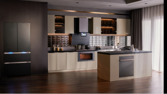 显然,在客厅、卧室等场景,想要实现奶油风和侘寂风并不难。但是,在中式厨房想要实现这一目标不亚于一次从0到1的创新和重塑。究其原因,中式厨房油烟机、燃气灶、蒸烤箱等电器类产品较多,且颜色单一,主要由不锈钢色和黑色构成,很难实现厨电和厨房的融合,更别提颜值了。