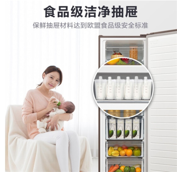 对于有宝宝的家庭来说,孩子吃的母乳和食材保鲜极其重要。众所周知,传统冷柜占地大容量小、食材多样温度单一、没有区分拿取不便,没有专储空间容易导致母乳串味、滋生细菌危害宝宝健康。这款美的一级能效多用分区立式冰柜,堪称妈妈们的储鲜好帮手。不仅有240升大容量空间能满足六口之家的储鲜需求,还有5个存储抽屉+2个翻盖层精细分储,保鲜抽屉材料达到欧盟食品级安全标准,无需担心食品长时间放置抽屉内而吸附有害物质,让妈妈们存储取食物不费劲,让一家人都能吃的营养健康。此外,在同等容积下,这款冷柜占地面积仅有卧式冷柜的2/3,小身材大容量,母婴家庭值得拥有。