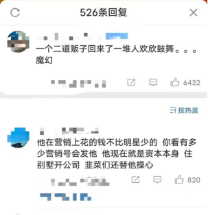 更有网友大胆发言:李佳琦现在每次有活动都是营销号联动,营销上花的钱怕是不比明星少,他就是资本本身,赚粉丝的钱买营销,“韭菜精”还上赶着给他送钱。