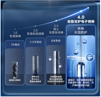 企业科技创新对于用户的最大价值,就是解决生活中的一个个不满意,从而为品质生活带来“幸福时光”。在电热水器消费市场上,自产品诞生以来的百余年间,中外厂商的主流技术方案是用“镁棒代替内胆腐蚀”的方式达到保护电热水器搪瓷内胆、防止腐蚀漏水的目的。但与此同时,这也给用户使用体验带来诸多困扰:镁棒寿命短,时隔2年就需要更换;同时镁棒腐蚀后的产物会对水质造成二次污染。
