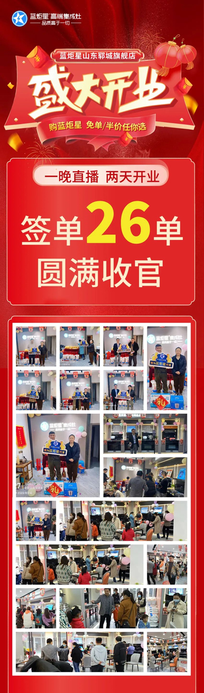 门新店开业喜庆热烈的氛围加上超值折扣与超多福利,吸引了一波又一波的顾客前来捧场,还有钟情于蓝炬星集成灶的用户也纷纷闻讯而来,门店内人气火爆。
