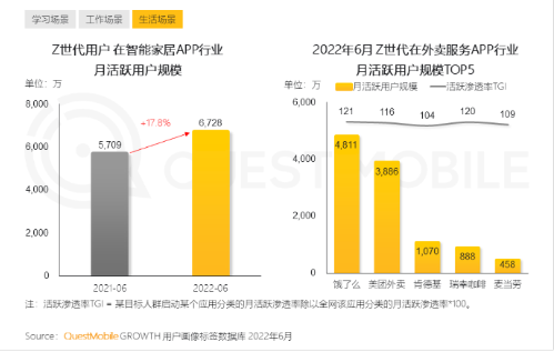 据调查报告显示,Z世代用户在智能家居APP行业月活跃规模相比去年增长17.8%。愈加智能化的家电家居节省家务时间,备受当代年轻人青睐。