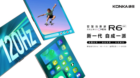 一方面,康佳今年国庆节前推出的“新一代自成一派”的旋转场景屏R6新品,凭借全新互动玩法和更丰富的场景适配能力,为用户带来差异化的大屏体验优势。R6搭载全新ME柚旗舰OS系统,能实现百万APP无限安装,多任务系统随时切换海量应用;拥有四种拼屏显示模式,可打造百种生活应用场景;65吋R6还搭配康佳自有专利技术90°旋转挂架,可实现横竖屏旋转,深层满足了年轻用户对于大屏电视多元化、场景化的新使用需求。