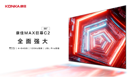 其中康佳98C2巨幕影院搭载Dolby Vision杜比视界,大大提升了亮度、色彩度以及对比度,能够轻松呈现出震撼逼真的画面,带来媲美IMAX级巨幕影院的视觉体验;“四路高刷”,“屏体、传输、解码、MEMC”四路全部为120Hz高刷屏率,激动人心的世界杯球赛,激烈的游戏畅玩等每一帧动作皆行云流水;搭载Dolby Atmos杜比全景声和JBL Pro音箱,超强音画组合,可为广大用户带来家庭影院级的临场感和沉浸感。