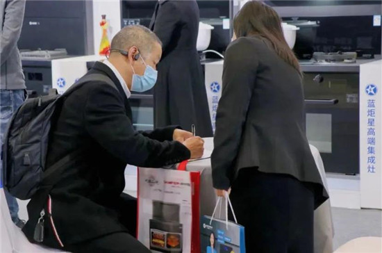 蓝炬星作为嵊州集成灶行业领军品牌受邀参展。在蓝炬星会场体验区内人潮涌动,驻足观赏的路人络绎不绝,媒体采访、网络达人直播打卡纷至沓来,现场咨询客户不断。