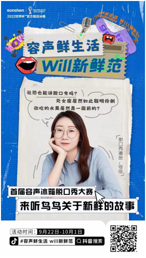 容声冰箱作为39年国民品牌,始终紧跟潮流以用户需求为中心,以年轻人备受喜爱的脱口秀选手为沟通桥梁,与用户实现同频共振,期待今后能继续与鸟鸟和童漠男展开进一步合作。容声will冰箱也将继续以智慧生活为大家注满活力,笑对生活迎接每一天的新鲜。
