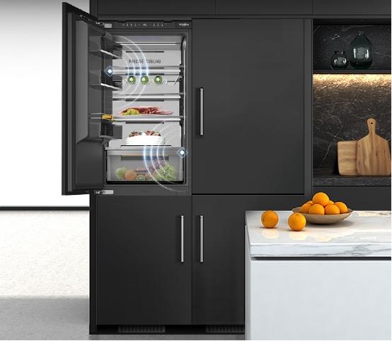 厨房的个性设计与实用内核是每个家庭生活方式的缩影,对空间美学的美好呈现,对食物品质的高要求,串起四季三餐百味,自然流露出高端消费者对美好生活的深深期许。W9系列嵌入式冰箱凝聚创新智慧优化保鲜科技,内置多重传感器实现智能控温,变频压缩机与变频风扇构成的双变频系统自动调控冷量输出,从制冷源头为保鲜性能背书;再针对各间室,冷藏室和冷冻室以风路双循环系统实现独立控温防止串味,配置更薄的发泡层设计为保温赋能,冷藏室更是配备多层扁平状出风口,搭配导热效果更好的不锈钢风道背板,高效制冷,保持食物新鲜本味。升级精细化保鲜服务,W9系列嵌入式冰箱特设变温式零冻锁鲜舱,可以调节微冻、0℃、母婴、果蔬4档温度模式,不管是需要精心留存新鲜本味的海鲜牛排,还是短期食用的奶酪甜点,均可享受量“食”定制的专属保鲜方案,锁住营养美味。