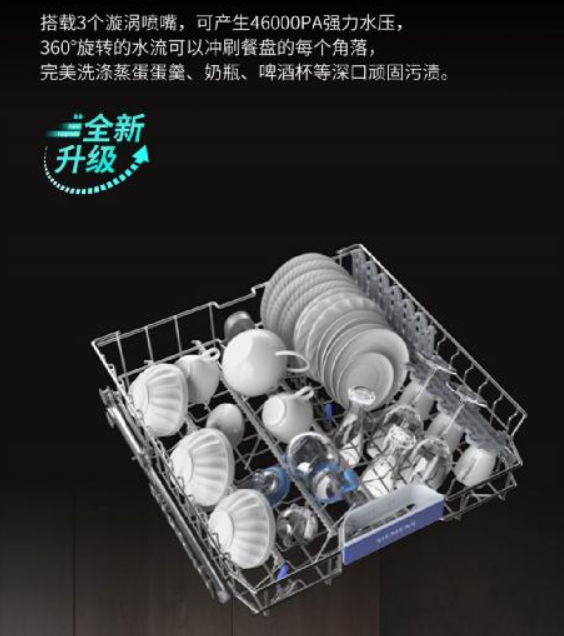 “洗得干净”是洗碗机需具备的基础要求,但深度清洁才是一款优良洗碗机的重要指标,西门子全能舱系列洗碗机搭载“德系智能BLDC”三核变频动力源,以驱动46000PA高压水流赋能洁净系统,360°旋转水流的精准涡流洗强力“扫射”餐具的每个角落,即使是对于蒸鸡蛋羹、茶渍、红酒印等顽固污渍,在不额外增加洗涤剂和提高温度的情况下,也能实现全域强力洁净,有效避免污渍残留。同时,西门子全能舱系列洗碗机借助专利晶御智能系统,完美实现超净洗、日常洗、智能洗、节能洗、超快洗、自定义等六重专业洗涤程序,协助用户从容应对各类油污。