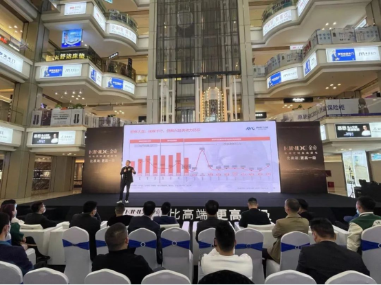 随后,金帝营销中心副总经理邓城武就品牌高端战略内涵的创新性与系统性进行了解读,他强调,金帝“三新战略”将会是公司走向未来、创造历史的核心力量,以“定制”概念为核心的高端产品线拥有很强的吸引力,因此公司在后续投入中会持续性地为此聚焦资源,也会继续用行动夯实自身品牌综合实力,坚持技术+产品+服务的路线,以看得见的和能够被感知到的规模为经销商乃至整个行业带来更为巨大的机会点。