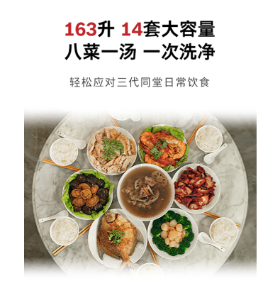 14套大容量设计,一次洗净节能省心
