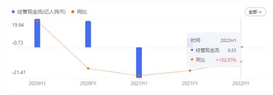 从国美零售(00493)披露的2022年半年报来看,国美零售总资产744.71亿元,总负责为585.68亿元,负债率为78.65%。其中需在1年内偿还的银行借款和其他借款有229.02亿元。而目前公司的现金及现金等价物仅为24.09亿元。同时,上半年公司经营活动现金流仅有0.55亿元元,可见债务缺口巨大,国美的偿还能力存疑。