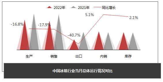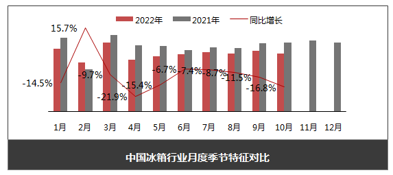 1-10月冰箱总产量为6327.6万台,同比下降10.7%;总销量为6367.4万台,同比下降11.2%;总出口量为2973万台,同比下降19%;总内销量为3394.4万条,同比下降3%。