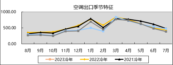 2023冷年累计家用空调生产3068.50万台,同比增长0.62%,销售3090.93万台,同比增长2.18%,其中内销出货2081.91万台,同比增长7.84%,出口1009.02万台,同比下降7.82%。