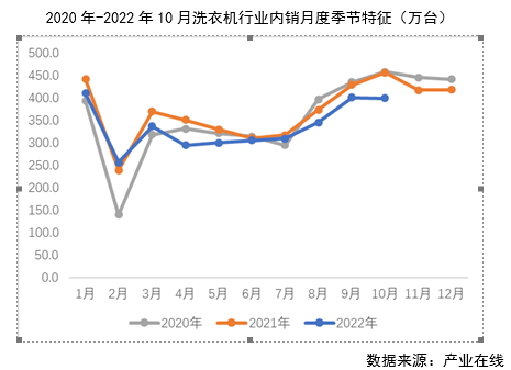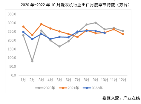 2022年10月,国内波轮洗衣机产量292.7万台,同比下降15%;总销量为307.5万台,同比下降12.1%。其中,内销为186.3万台,同比下降19.7%;出口为121.2万台,同比增长2.8%。同期滚筒产量为339.5万台,同比下降4.4%。滚筒销量为334.3万台,同比下降4.7%。其中,内销为213.5万台,同比下降4.7%;出口为120.8万台,同比下降4.7%。