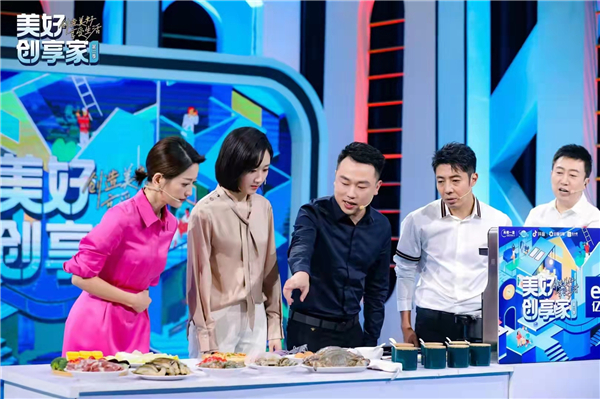 亿田总裁孙吉(中)与央视主持人撒贝宁同台大秀厨艺