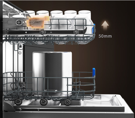 可调节空间的设计,让锅碗放入机器后不再纠结,锅碗瓢盆一次洗净,从容解决餐后碗筷烦恼!