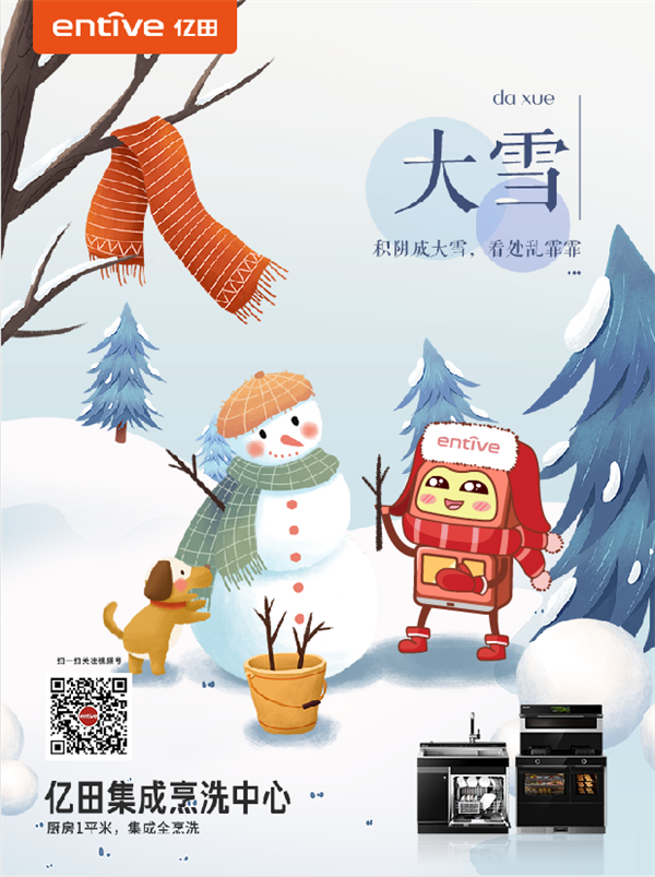 大雪今至,人间至此年盛时。亿田集成科技,无惧冬寒凌冽的历练,打造暖胃暖手更暖心的厨房,岁暮天寒,顺问冬绥,亿点温暖,才更心安。