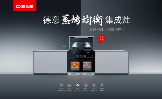 2022年,德意又创新推出蒸烤均衡集成灶,延续了德意集成灶“大风压、大火力、大空间”三大优势,做到了蒸烤双腔的独立并实现领先行业的48L+48L超大蒸烤容量,有效提升了烹饪效率和厨房空间利用率,实现了很多小户型家庭想拥有多种厨电制作美食的梦想。