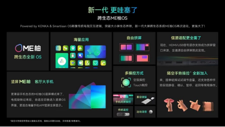 紧跟球迷看球需求,康佳电视在系统操作、内容升级、互动迭代等维度深度发力,发挥全新软件系统交互优势,为球迷打造了与众不同的沉浸式看球体验。此次活动,康佳重磅推出的智慧场景屏R6和康佳MAX巨幕98C2电视新品,软件系统均采用ME柚旗舰OS系统,实现了自由拼屏、海量应用、投屏大师等特色功能。