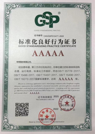 此次获评“标准化良好行为5A级企业”,不仅是对华帝标准化工作的再次肯定,同时也标志着华帝全面推进现代化企业标准体系建设的工作,迈入了新的阶段。