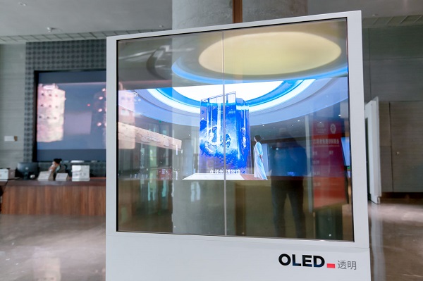 据悉,捐赠给郑州博物馆的这台透明OLED拼接屏由两块55英寸、透明度达到40%的透明玻璃基板组成,其屏体厚度不到1mm,可以附着在玻璃上,把整块玻璃做成透明屏幕。在不影响观看玻璃背后展品的前提下,透明OLED屏幕还能呈现图文、视频等内容播放,并实现触摸、AR等互动效果。
