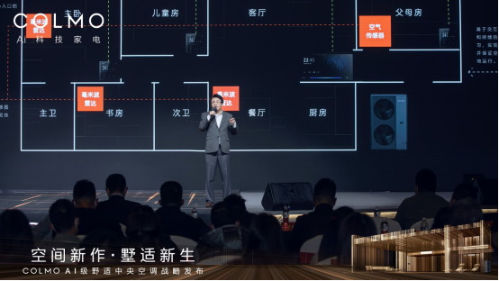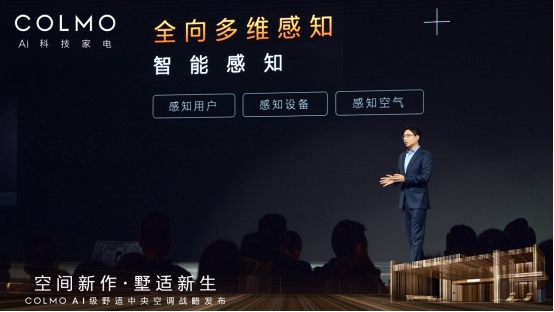 作为本次发布的压轴环节,COLMO战略新品AI级墅适中央空调的惊艳亮相。据美的集团家用空调事业部国内营销公司总经理张玉龙介绍,COLMO AI级墅适中央空调拥有强大的平台能力、交互能力、方案能力和服务能力,将为菁英人群提供更高端全屋智能解决方案。