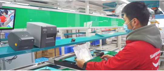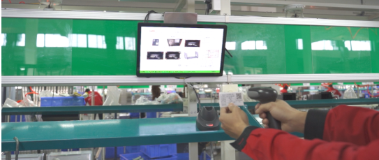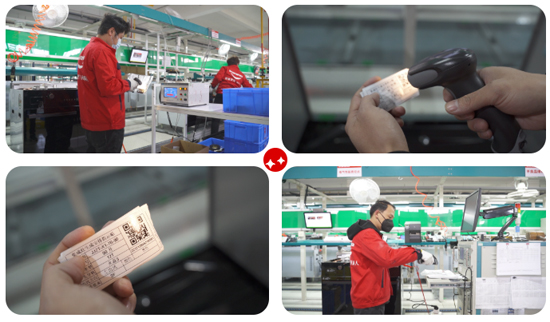 每台产品的配件和整机都贴有条码,每一道工序扫描条码进行信息录入,系统通过采集的检测数据,自动判断产品是否合格,如数据异常则自动出现报警,产品立马进入返修检测环节,保证产品100%的合格率。